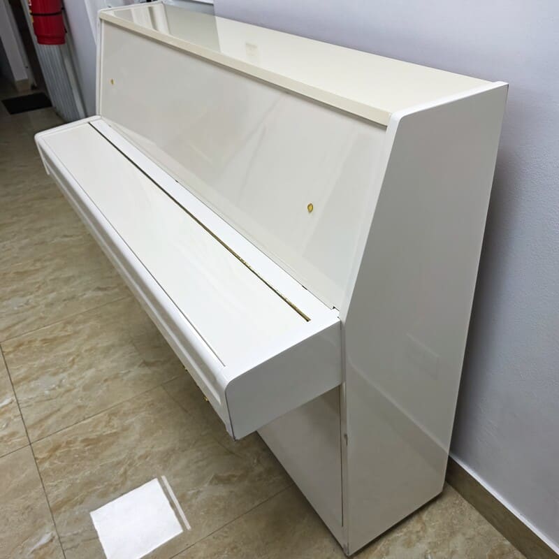 El Hazelton CS-108 es un piano acústico vertical de estilo europeo, diseñado para ofrecer una excelente calidad sonora en un formato compacto y elegante. Su gabinete tipo consola europea, en blanco alto brillo, lo convierte en una pieza sofisticada y moderna, ideal tanto para hogares como para academias, estudios y salas de música.